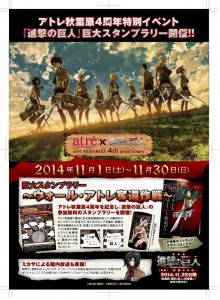 アトレ秋葉原の4周年記念特別イベントとして「進撃の巨人」の“参加無料の巨大スタンプラリーイベント”を開催いたします。期間中は“ミカサによる館内放送”も実施します!