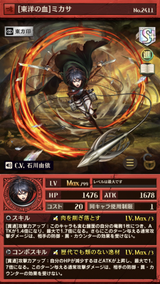 (⑤)[東洋の血]ミカサ(S+)属性:竜(CV:石川由依)