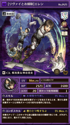 [リヴァイとお掃除]エレン(S+) 属性:魔(CV:梶裕貴) |