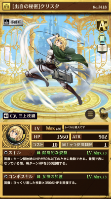 (①)進化:[出自の秘密]クリスタ(A+)属性:神(CV:三上枝織)