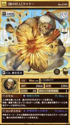 (②)[鎧の巨人]ライナー (S+)属性:神(CV:細谷佳正)