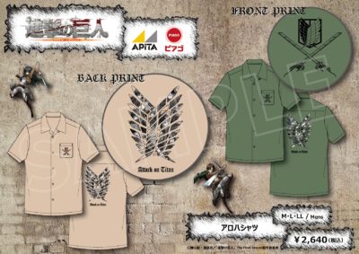 2022.05.26 GOODS アピタ、ピアゴに「進撃の巨人」アロハシャツが登場! 夏もすぐそこまで来ている!! ついにアピタ、ピアゴに「進撃の巨人」 アロハシャツが登場!! 5/26(木)順次発売予定 店舗検索はこちら →uny.co.jp/shop/ ※一部お取り扱いのない商品・店舗がございます。