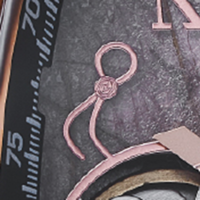 作品ロゴのひび割れたような質感を、文字盤とベルトに和紙で再現しました。