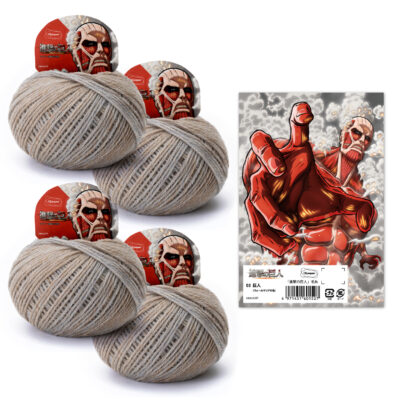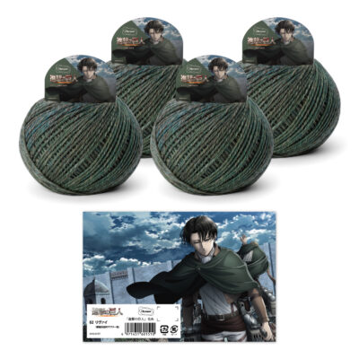 物語のキーアイテム、「エレンが巻いてくれたマフラー」(4玉使用)をイメージした作品が編める毛糸3種(エレン/リヴァイ/巨人)