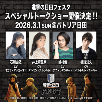2026年3月1日(日)に、『進撃の巨人』TVアニメキャストによる特別トークイベントを開催!