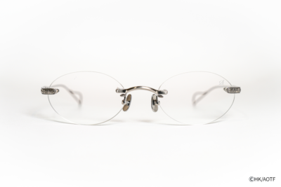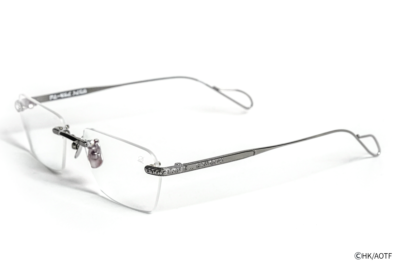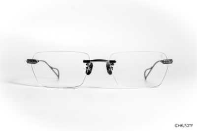 リヴァイのアイウェアのシルエットはリムレスでスクエアカットのクールなデザイン。