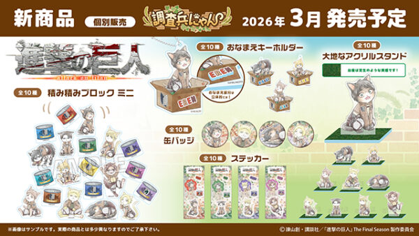 新規描き起こしデフォルメイラスト「調査兵にゃん」を使用した様々な商品が登場です!